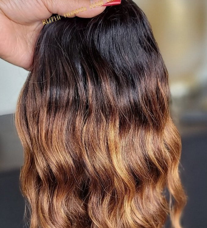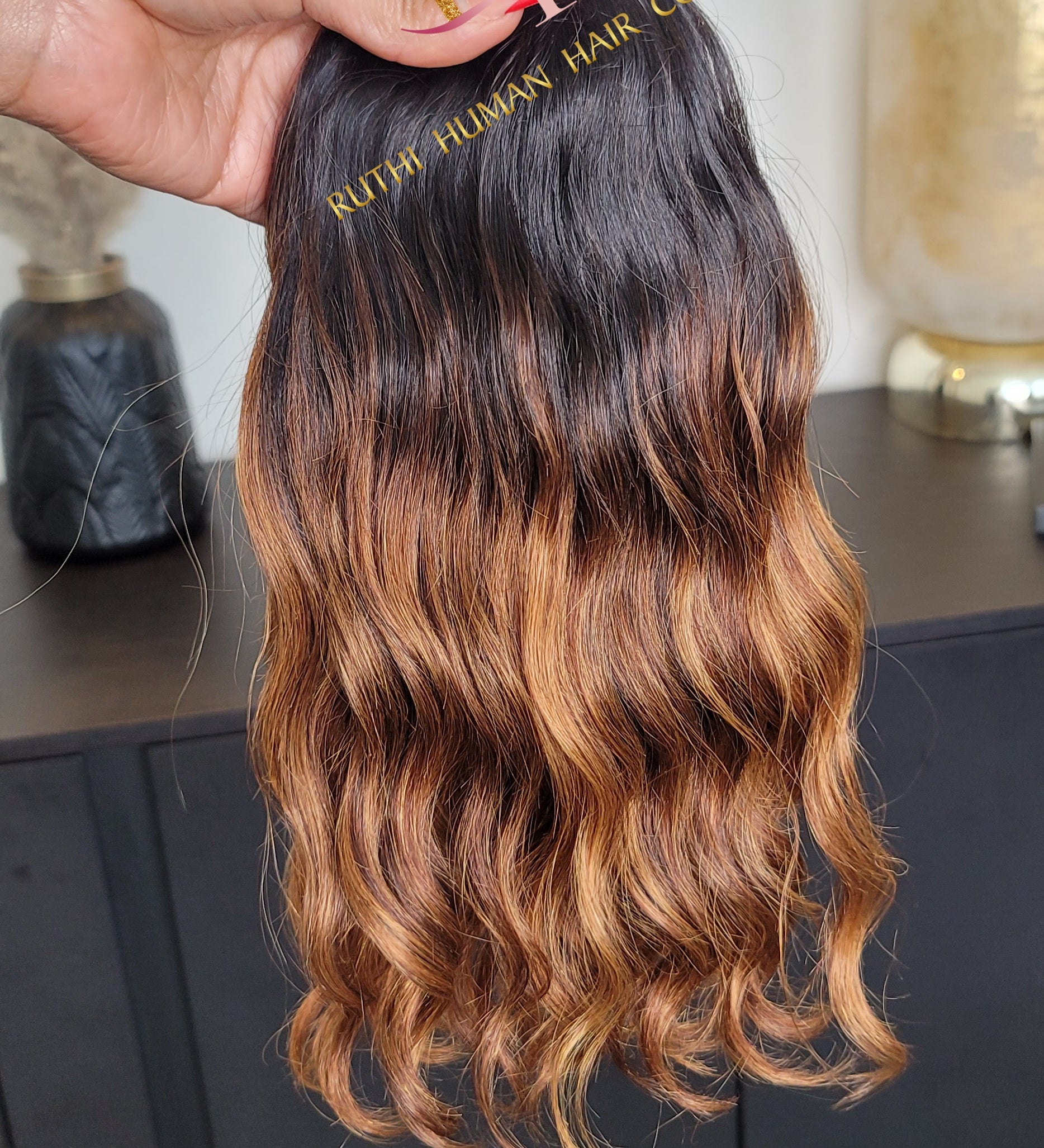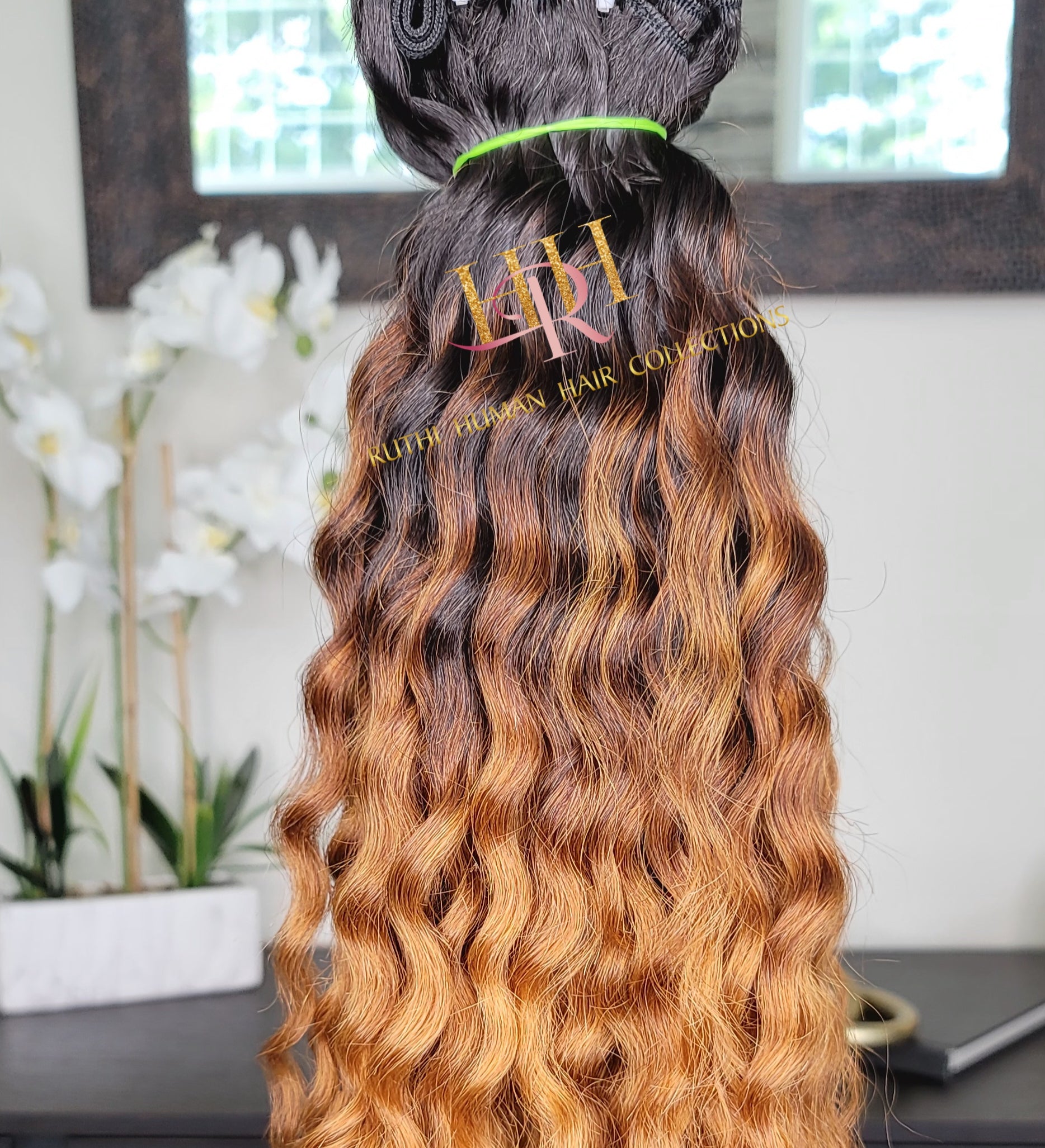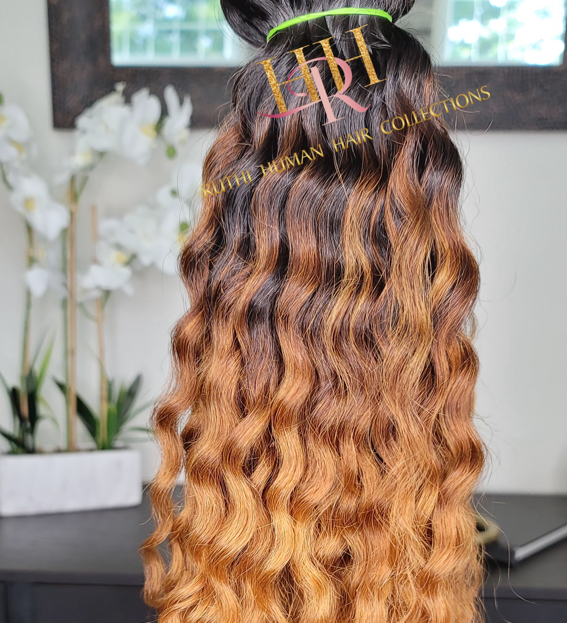 100% Raw Human hair cuticle intact Bundles, wavy Ombre colored