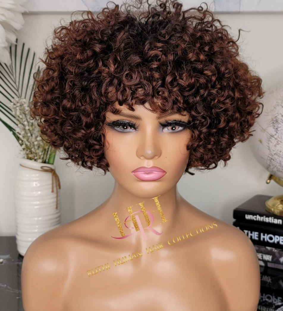 100%Humanhair lace closure wig kinkiy curly highlight colored