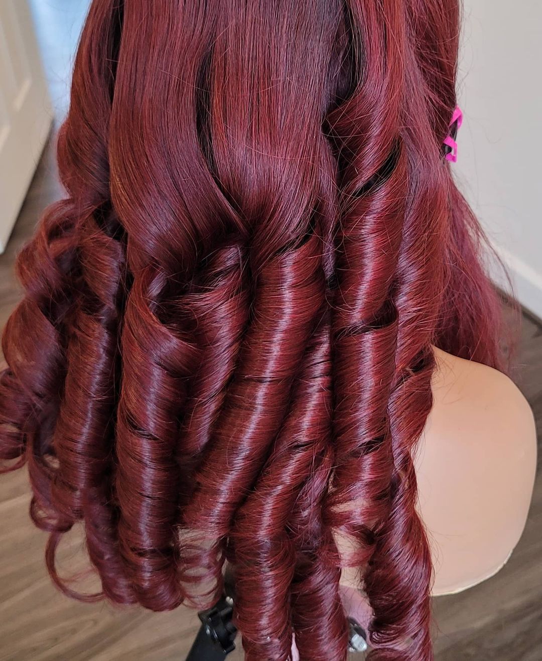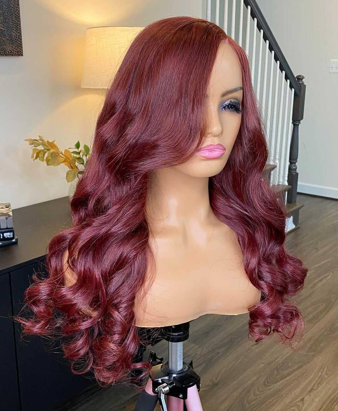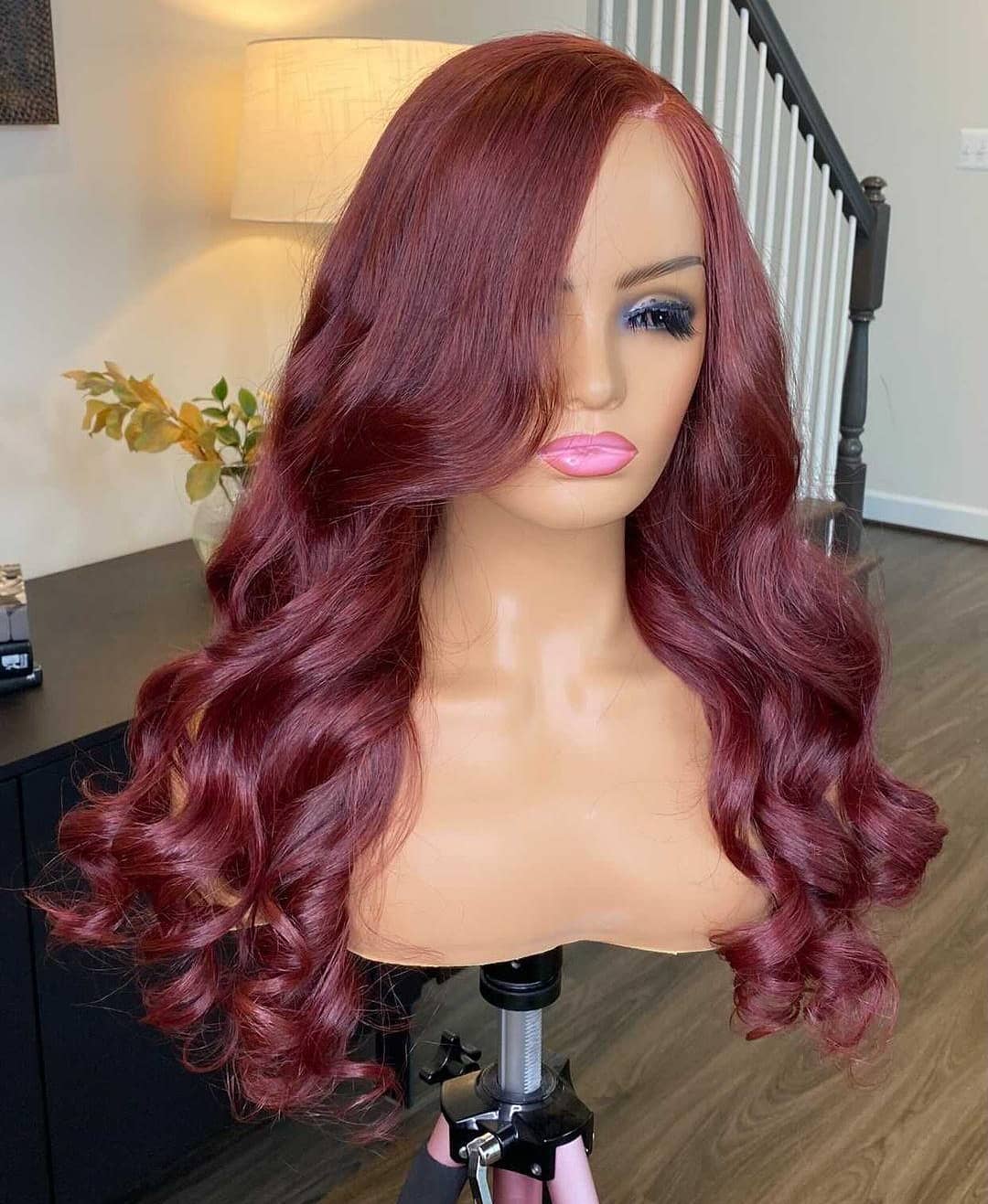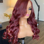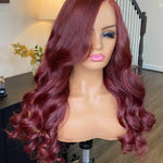 100% Humanhair lace frontal body wave wig custom colored Burgundy