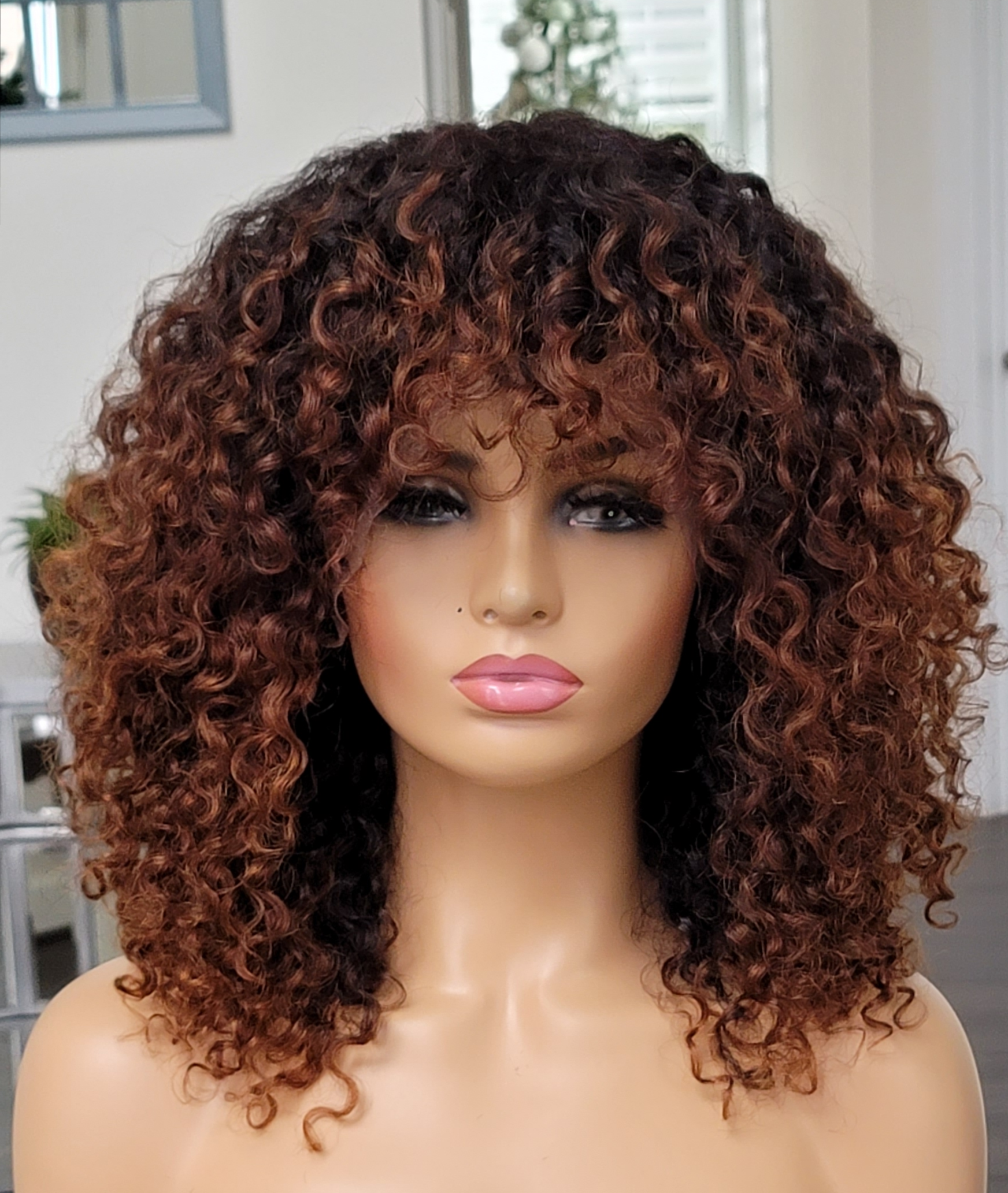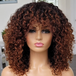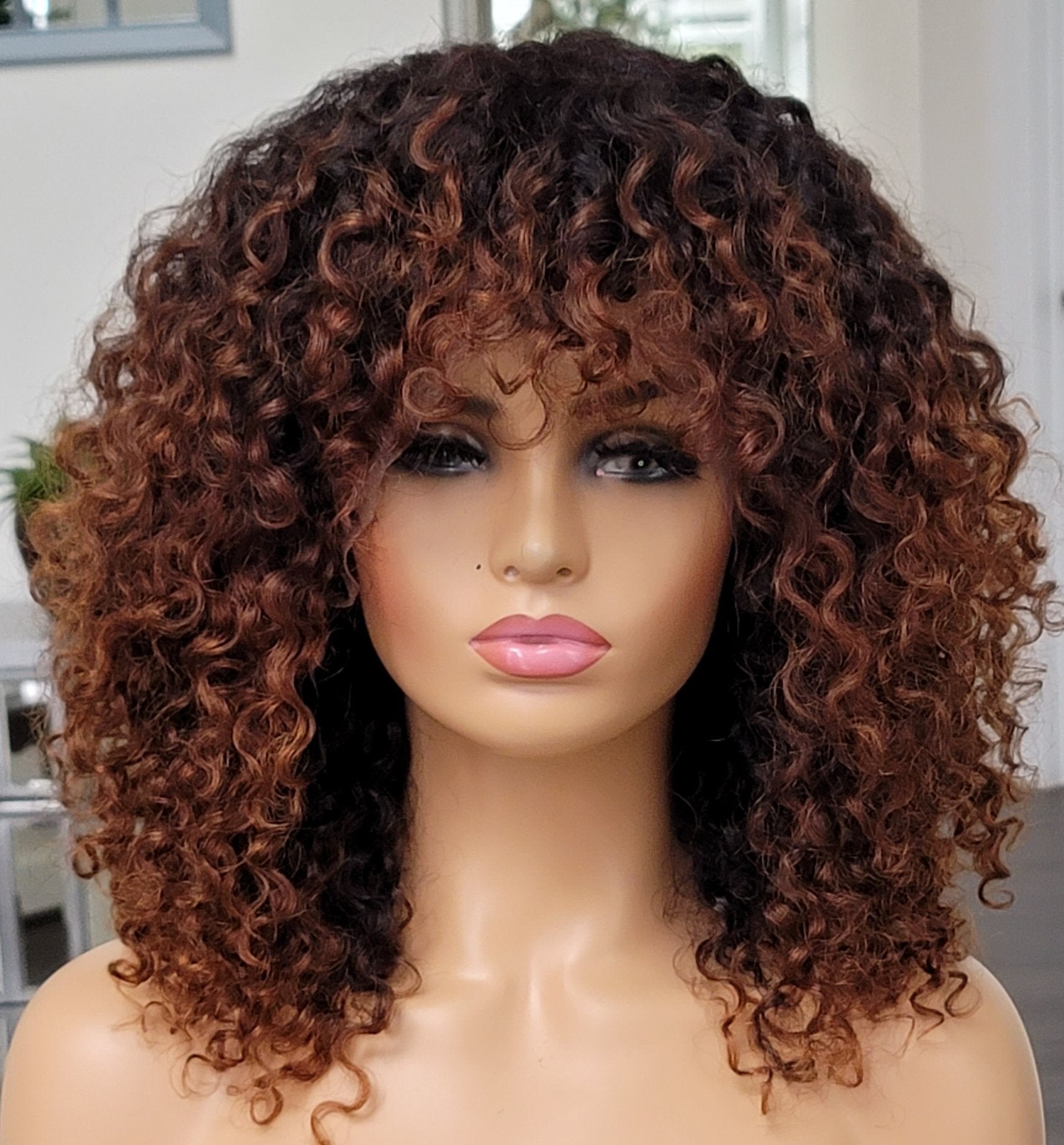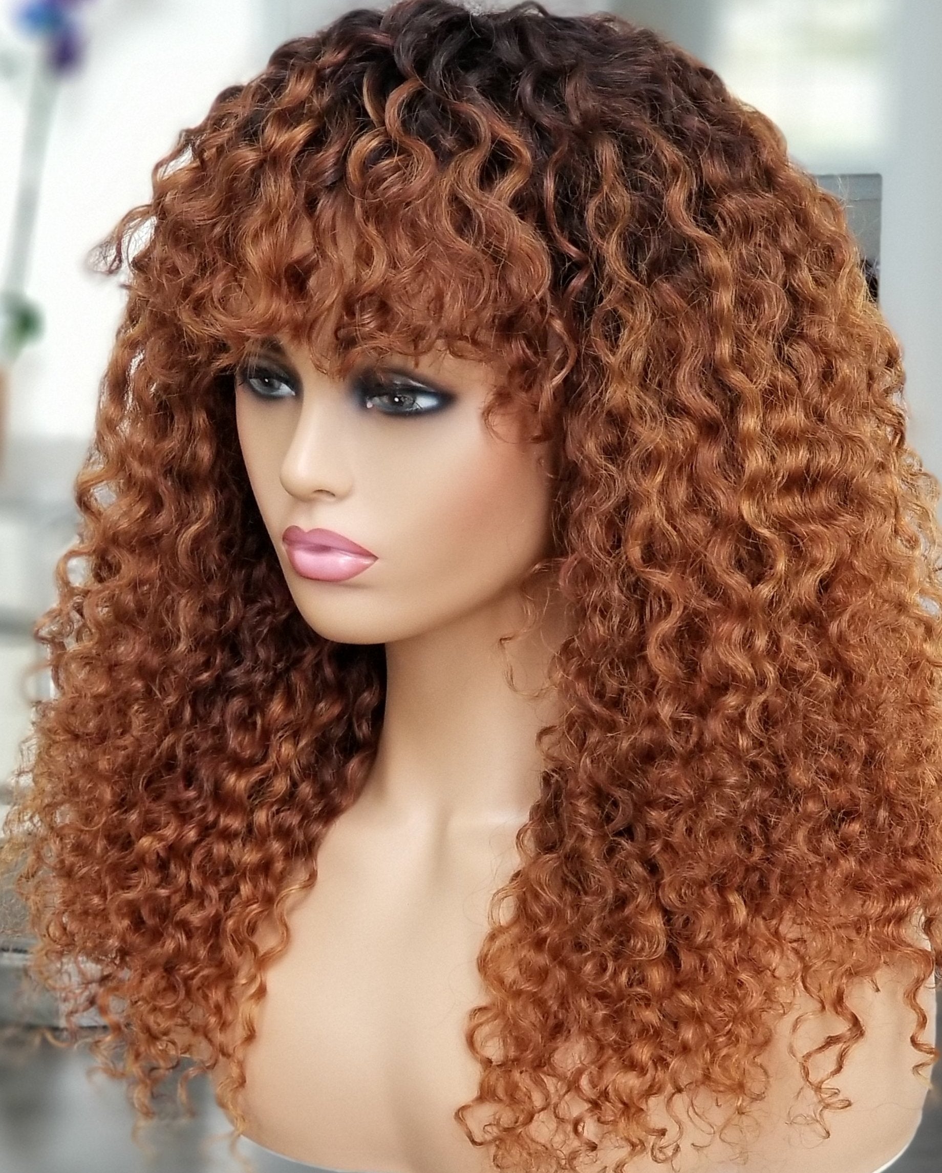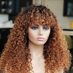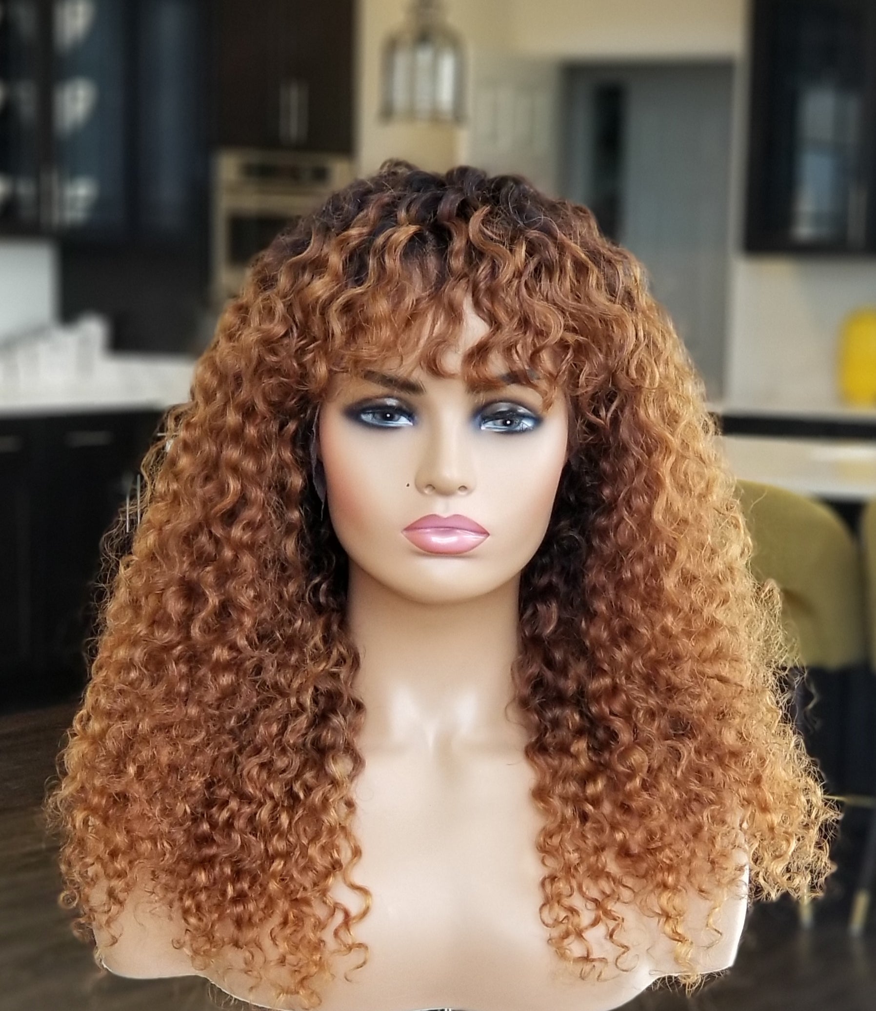 100% Humanhair wig Deep curly Bang cut/ Blonde
