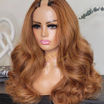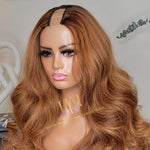 Human hair U part wig Body wave highlight colored.