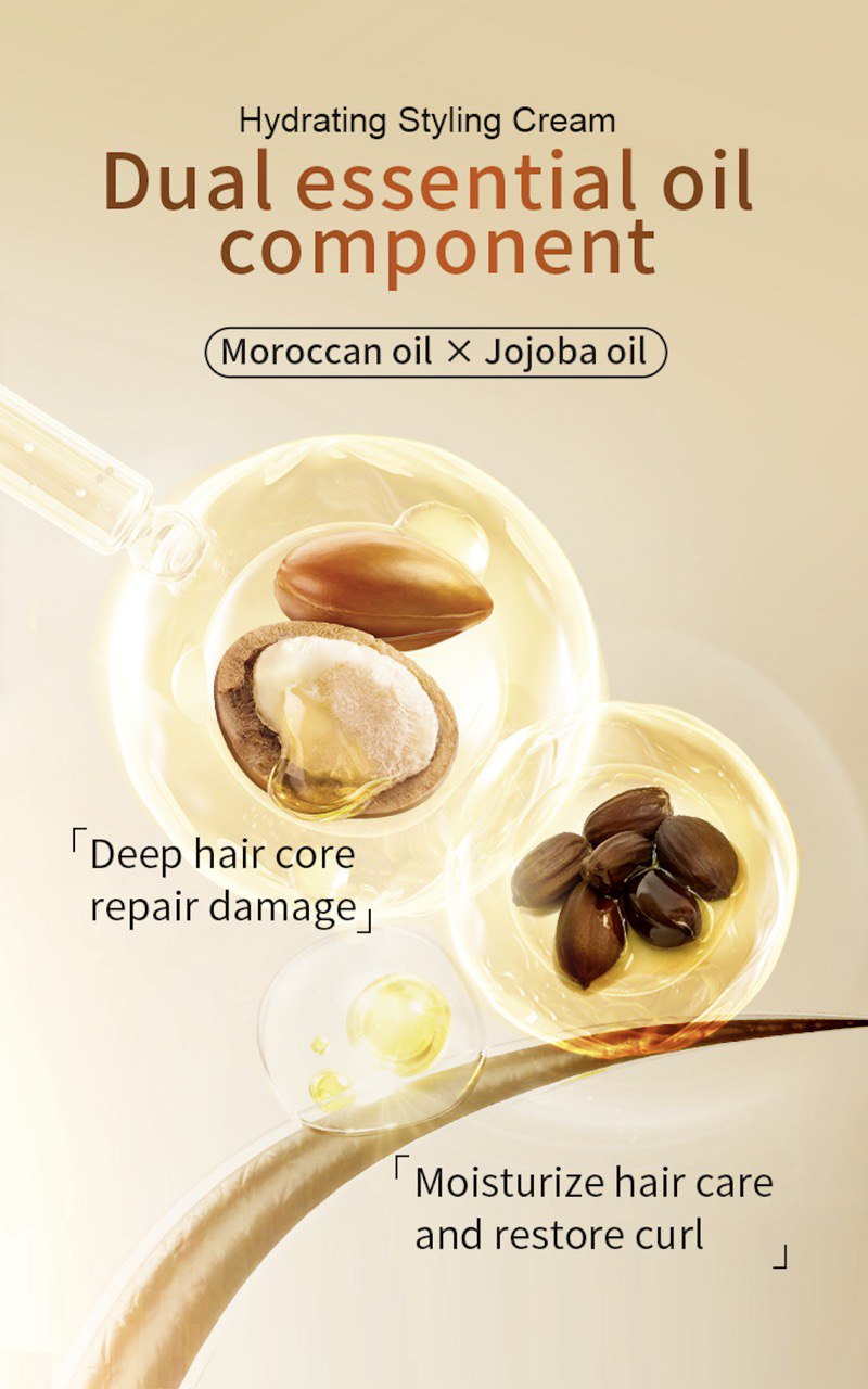 This hydrating styling cream infused with Moroccan Argan Oil, moisturizes & defines any hair type. Hydrating argan Oil produces shine,defines curls, and smooths frizz.